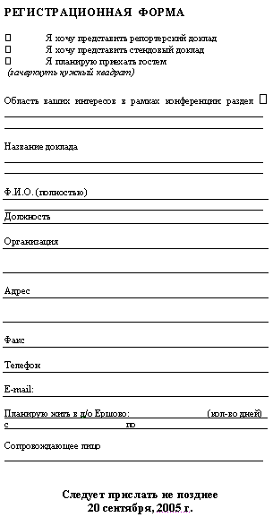 Заезд участников 21 ноября с 16.00, отъезд – до 12 час. 25 ноября 2005 г.
