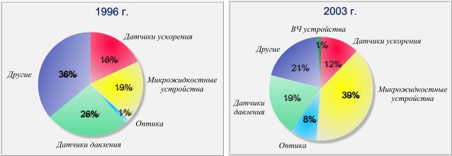 микроустройств. Поэтому сейчас значительную долю рынка микросистем составляют