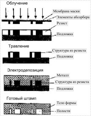 | Рис. 8. Последовательность технологических этапов LIGA-технологии |