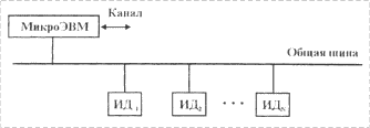 основе общей шины. МикроЭВМ управляет процессом сбора данных, осуществляет